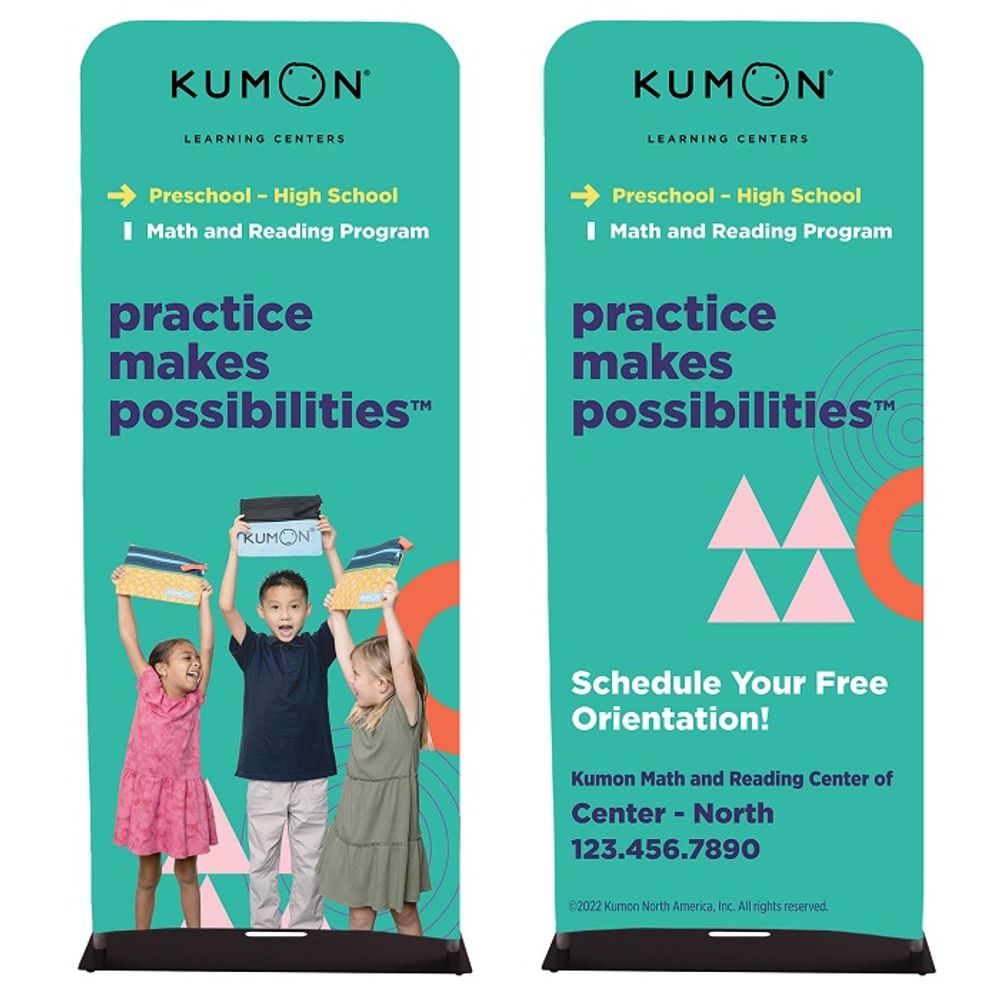 A fabric graphic cover slides over a tubed frame, letting you display amazing backdrops.